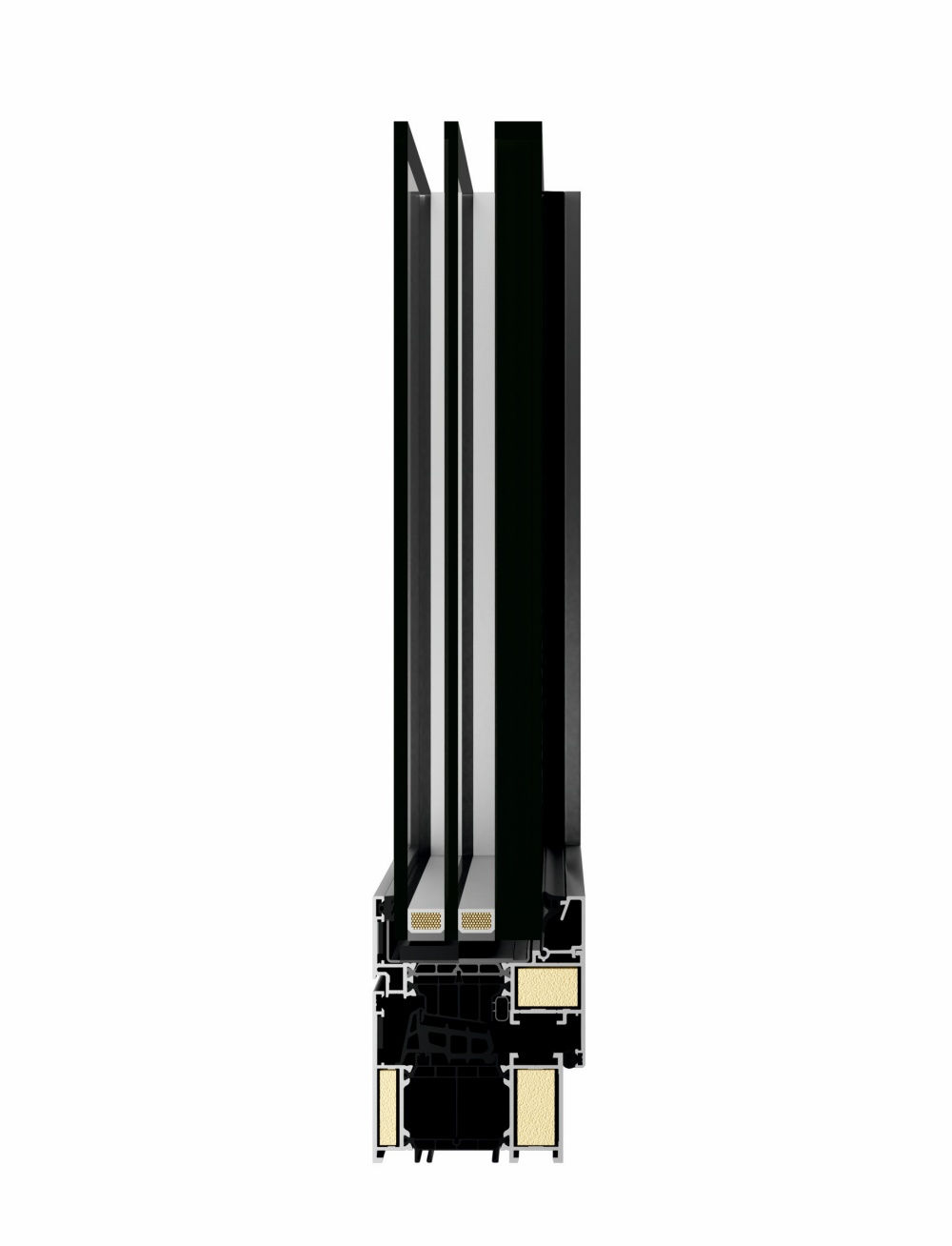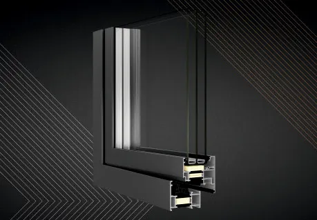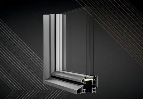 - Profile mit Dreikammer-Aufbau, bei denen der mittlere Teil die Isolierkammer zwischen thermischen Trennungen mit einer Breite von 43 oder 42 mm ist